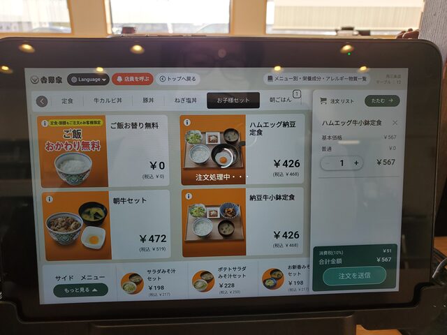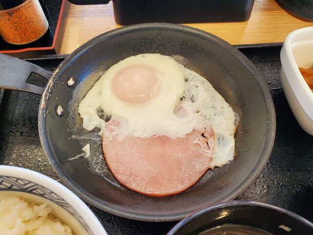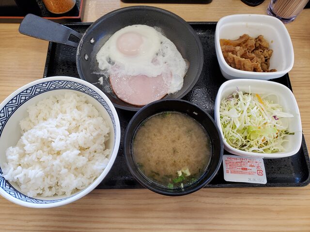 吉野家のハムエッグ牛小鉢定食!