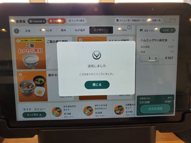 ぐらいの感覚です。さすが吉野家です。早いですねぇ。