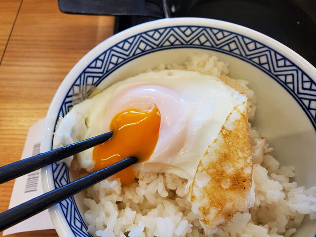 とはいえ、卵と牛丼は相性はバッチリなのでたとえ混ざってもいいかもしれませんけどね。